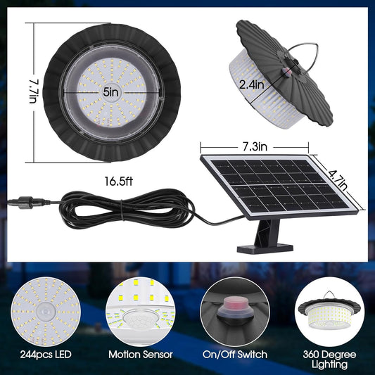 GATXLTE Solar Shed Light with Remote Control Solar Pendant Light Outdoor 360° Lighting IP65 Waterproof Outdoor Lights with Motion Sensor